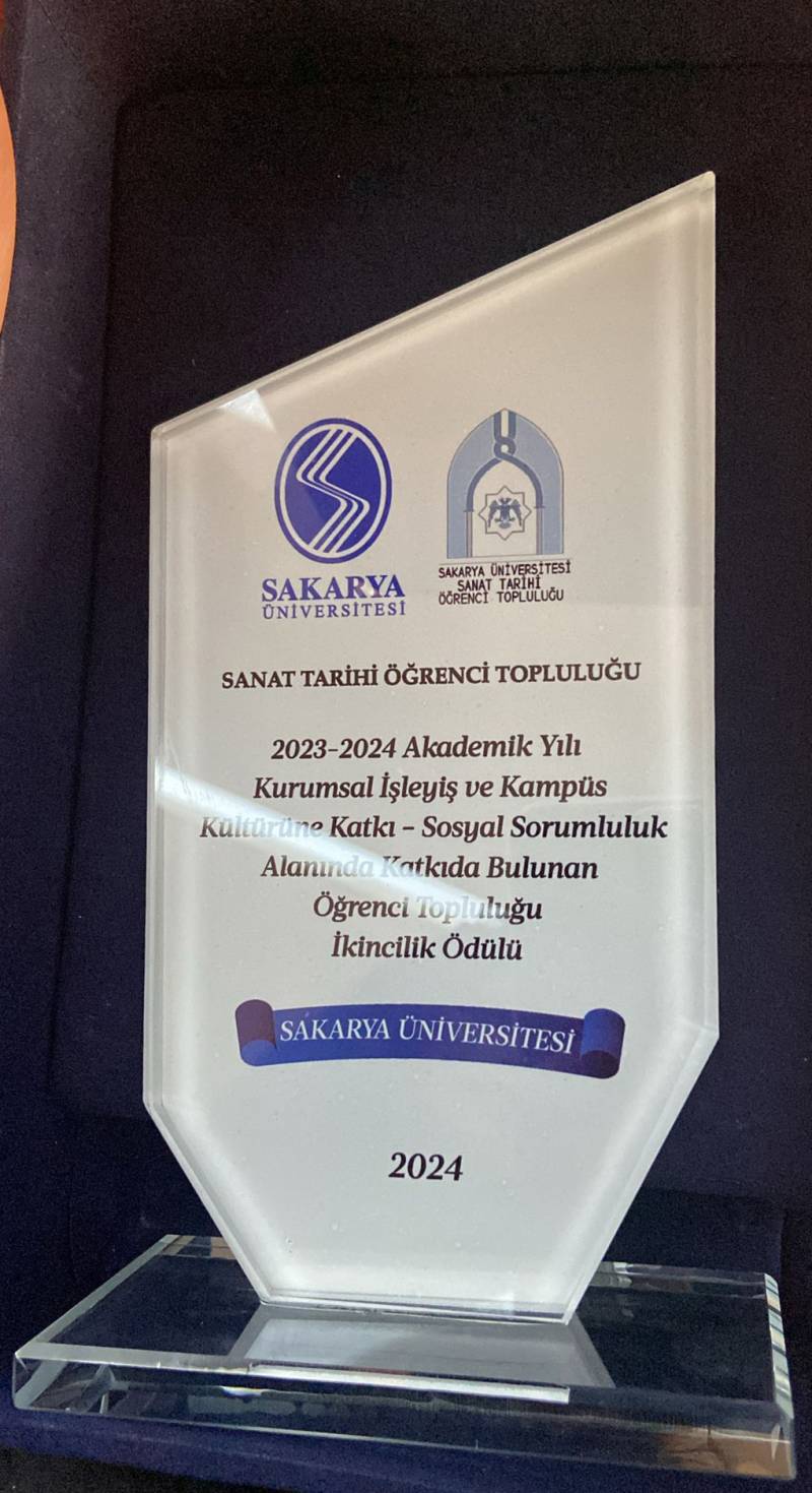 Sanat Tarihi Öğrenci Topluluğu "2023-2024 Akademik Yılı Kurumsal İşleyiş ve Kampüs Kültürüne Katkı-Sosyal Sorumluluk Alanında Katkıda Bulunan Öğrenci Topluluğu" alanında İkincilik Ödülüne layık görülmüştür. Bu ödülün alınmasında katkısı bulunan başta etkinliklerimize destek veren tüm öğrencilerimize, Yönetim Kuruluna, Topluluk Başkanı İkra Türkmen'e, Topluluk Akademik Başkanı Dr. Görkem IŞIK'a ve katkıda bulunan akademik personelimize bölümümüz adına teşekkür ederiz.